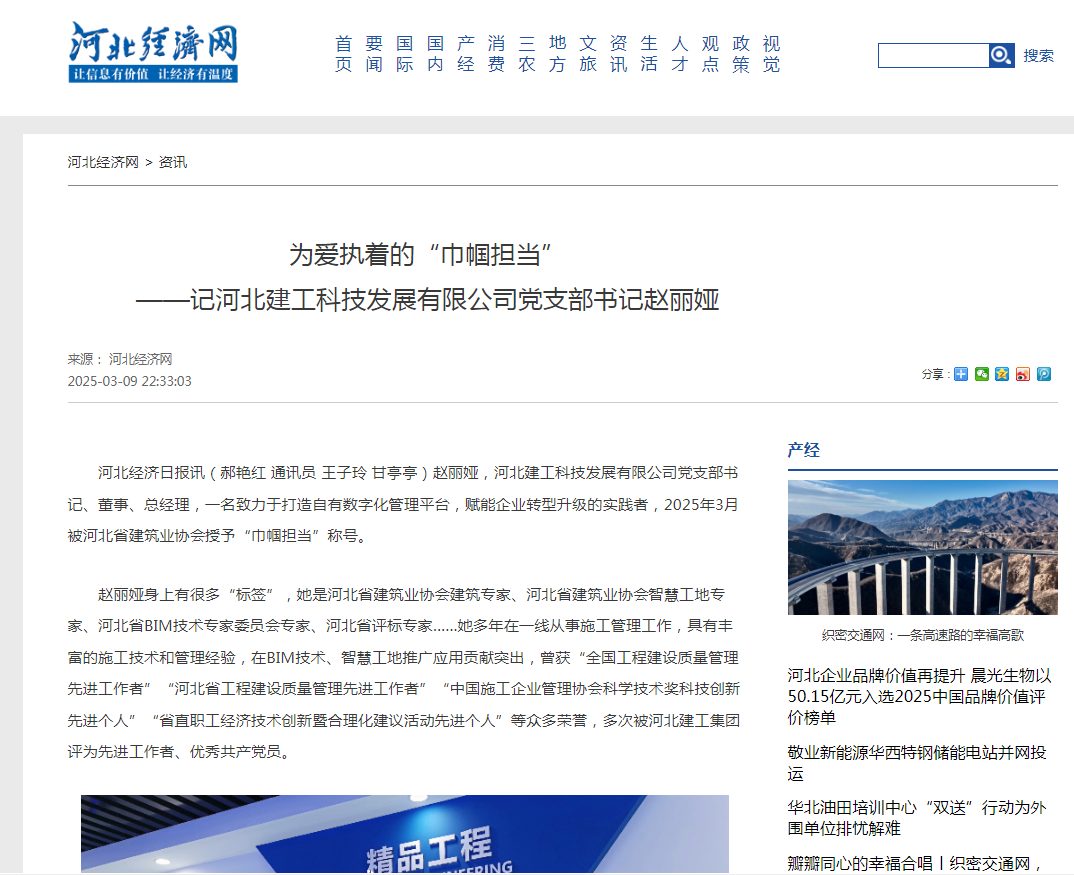 為愛執(zhí)著的“巾幗擔(dān)當(dāng)” ??----記河北建工科技發(fā)展有限公司黨支部書記趙麗婭 ? 趙麗婭,河北建工科技發(fā)展有限公司黨支部書記、董事、總經(jīng)理,一名致力于打造自有數(shù)字化管理平臺,賦能企業(yè)轉(zhuǎn)型升級的實踐者,2025年3月被河北省建筑業(yè)協(xié)會授予...